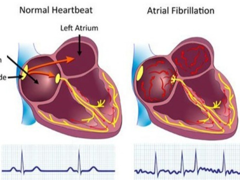 În mod normal, pulsul este regulat având între 60 și 100 de bătăi pe minut. În fibrilația atrială, pulsul este neregulat și poate urca la 100-175 de bătăi pe minut. La început, în faza acută, puteți simți un fel palpitații continue, ca un fluture însă în cazul cronicizării, după o vreme nu veți mai simți decât oboseală, amețeli și uneori dureri în piept. Netratată, Fibrilația atrială poate provoca accidentul vascular cerebral (paralizia) și insuficiența cardiacă care cu timpul poate necesita un transplant de inimă.